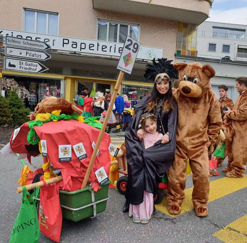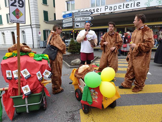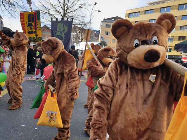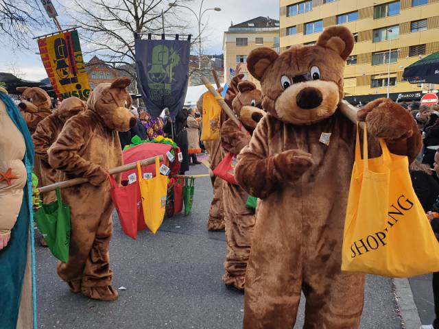 Sechs wilde, aktive, knudlige Bären waren mit der Nummer 29 Teil des Krienser Fasnachtsumzugs. Die Bären der «Aktion Bärenstark» haben sich bei der Bevölkerung für das aktive Einkaufen in Kriens bedankt. Die Zuschauer und die aktiven GVK-Bären hatten sichtlich Spass an der Aktion.